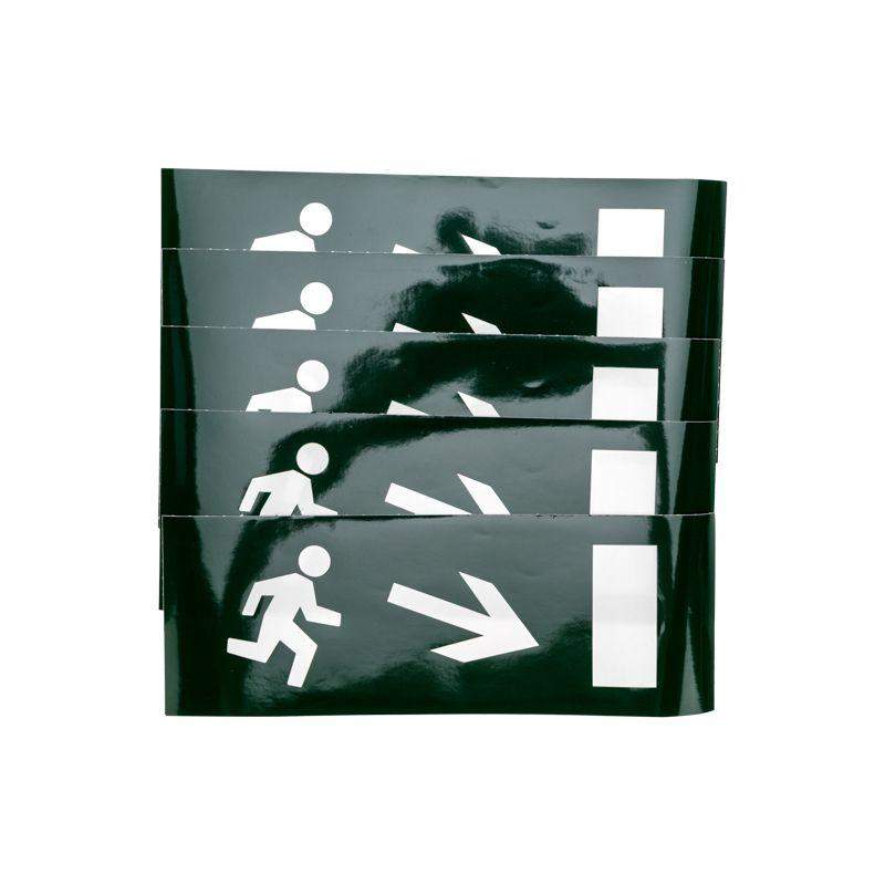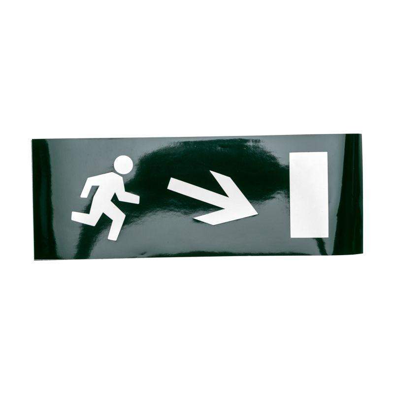 Наклейка для прозрачного аварийного светильника Арт 74-1310, размером 120*320мм. Наклейка выполнена из литой цветной пленки, которая имеет долгий срок службы и защиту от выцветания.