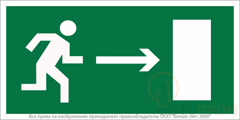 Знак безопасности "Направление к эвакуационному выходу направо" габаритные размеры 160х80 мм, фактические размеры 160х80 мм, сигнальный цвет - зеленый, контрастный цвет - белый