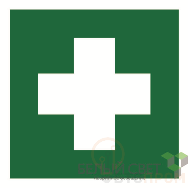 Знак безопасности "Аптечка первой медицинской помощи", габаритные размеры 250х250 мм, фактические размеры 250х250 мм, сигнальный цвет - зеленый, контрастный цвет - белый