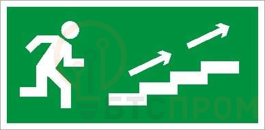 Сфера применения знака охватывает все виды общественных, коммерческих и промышленных зданий: офисные центры, торговые комплексы, производственные цеха, учебные заведения и медицинские учреждения. Он предназначен для четкого обозначения безопасного пути эвакуации вверх по лестнице и направо, обеспечивая быстрое и организованное движение людей в чрезвычайных ситуациях.