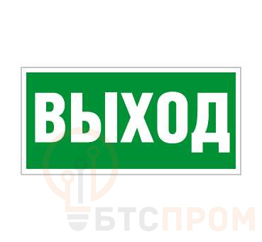 Наклейка "Выход" (ПЭУ 010) (210х105) СТ 2501002330 – аксессуар. Представляет собой самоклеющуюся пленку с надписью "выход" (на зеленом фоне белыми буквами). Размеры: 105 х 210 мм. Предназначена для аварийного обозначения выхода при внештатной ситуации. Устанавливается на аварийный светильник.