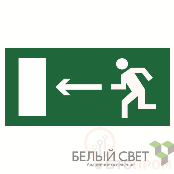 Знак безопасности "Направление к эвакуационному выходу налево" габаритные размеры 350х175 мм, фактические размеры 350х175 мм, сигнальный цвет - зеленый, контрастный цвет - белый