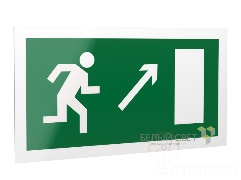 Знак безопасности "Направление к эвакуационному выходу направо вверх", габаритные размеры 418х218 мм, фактические размеры 400х200 мм, сигнальный цвет - зеленый, контрастный цвет - белый