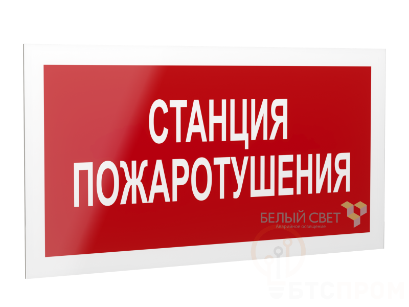 Знак безопасности "Станция пожаротушения", габаритные размеры 418х218 мм, фактические размеры 400х200 мм, сигнальный цвет - красный, контрастный цвет - белый