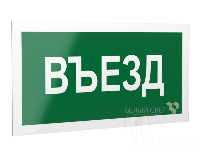 Знак безопасности "Указатель въезда", габаритные размеры 418х218 мм, фактические размеры 400х200 мм, сигнальный цвет - зеленый, контрастный цвет - белый