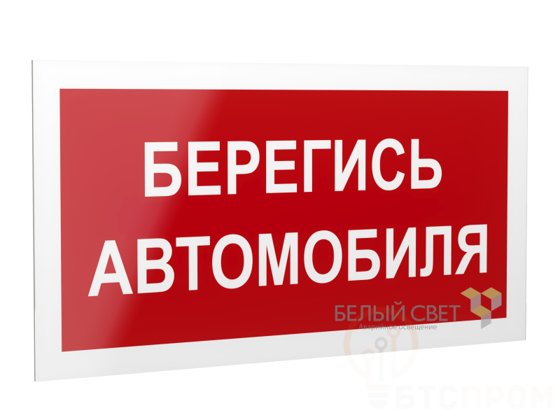 Знак безопасности "Берегись автомобиля", габаритные размеры 418х218 мм, фактические размеры 400х200 мм, сигнальный цвет - красный, контрастный цвет - белый