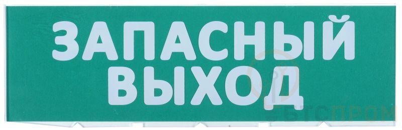 Сменное табло для охранно-пожарного оповещателя "Топаз". Состав: прозрачный пластик, бумага с зеленым фоном и надписью "Запасный выход".