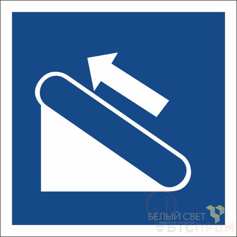 Знак безопасности "Эскалатор (подъемник)", габаритные размеры 150х150 мм, фактические размеры 150х150 мм, сигнальный цвет - синий, контрастный цвет - белый