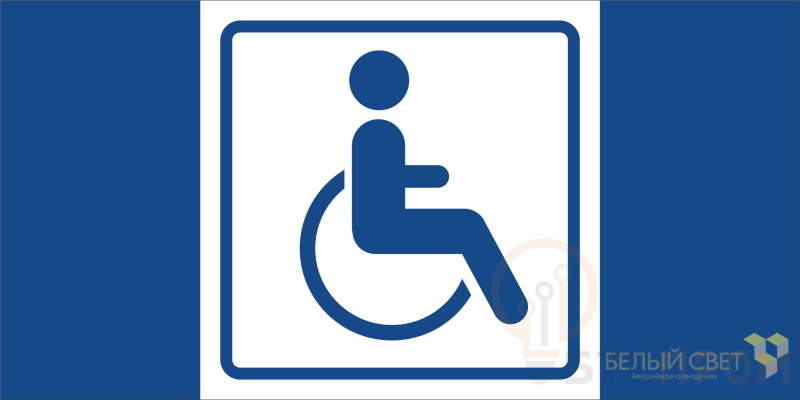Знак безопасности "Символы доступности для инвалидов в креслах колясках" габаритные размеры 200х100 мм, фактические размеры 100х100 мм, сигнальный цвет - белый, контрастный цвет - синий