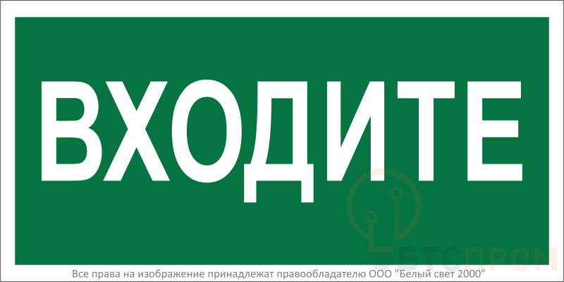 Знак безопасности "Входите" габаритные размеры 200х100 мм, фактические размеры 200х100 мм, сигнальный цвет - зеленый, контрастный цвет - белый
