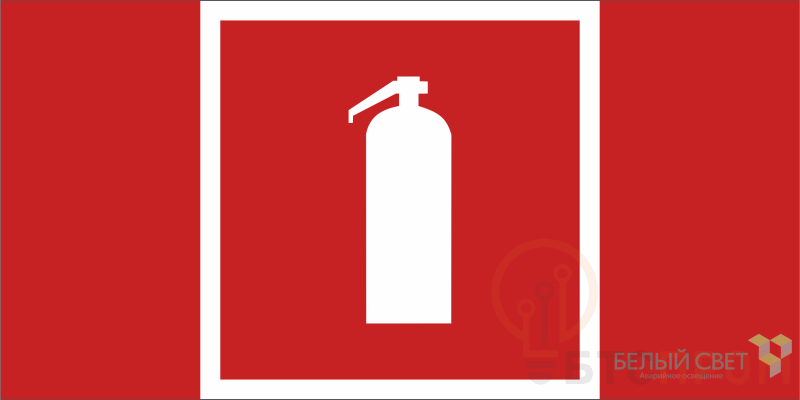 Знак безопасности "Огнетушитель" габаритные размеры 200х100 мм, фактические размеры 100х100 мм, сигнальный цвет - красный, контрастный цвет - белый