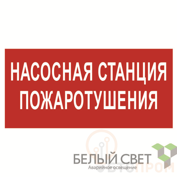 Знак безопасности "Насосная станция пожаротушения" габаритные размеры 200х100 мм, фактические размеры 200х100 мм, сигнальный цвет - красный, контрастный цвет - белый
