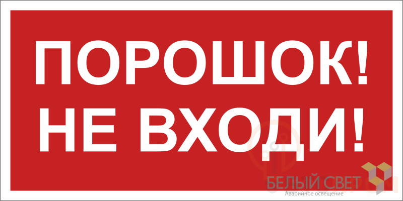 Знак безопасности "Порошок – не входи!" габаритные размеры 200х100 мм, фактические размеры 200х100 мм, сигнальный цвет - красный, контрастный цвет - белый