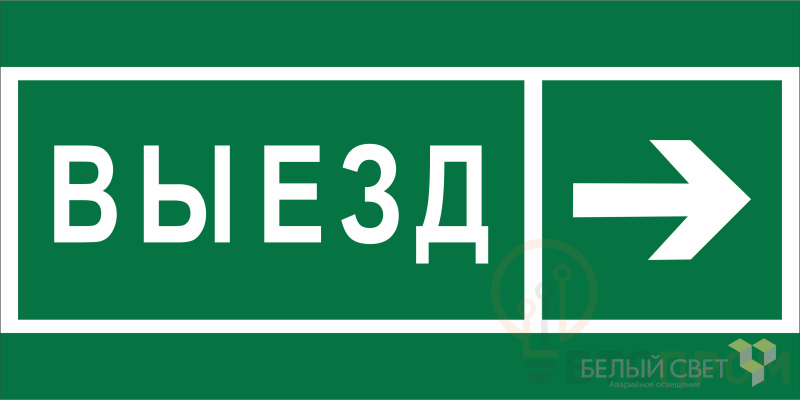Знак безопасности "Направление к воротам выезда направо" габаритные размеры 200х100 мм, фактические размеры 200х74 мм, сигнальный цвет - зеленый, контрастный цвет - белый