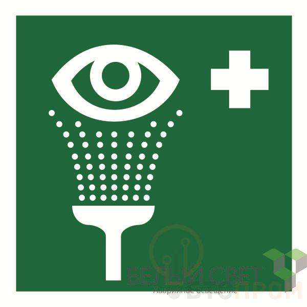Знак безопасности "Пункт обработки глаз", габаритные размеры 200х200 мм, фактические размеры 200х200 мм, сигнальный цвет - зеленый, контрастный цвет - белый