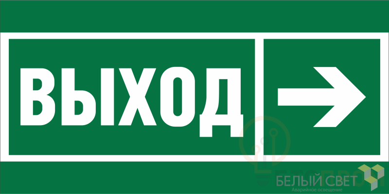 Знак безопасности "Направление к эвакуационному выходу направо" габаритные размеры 290х145 мм, фактические размеры 290х107 мм, сигнальный цвет - зеленый, контрастный цвет - белый