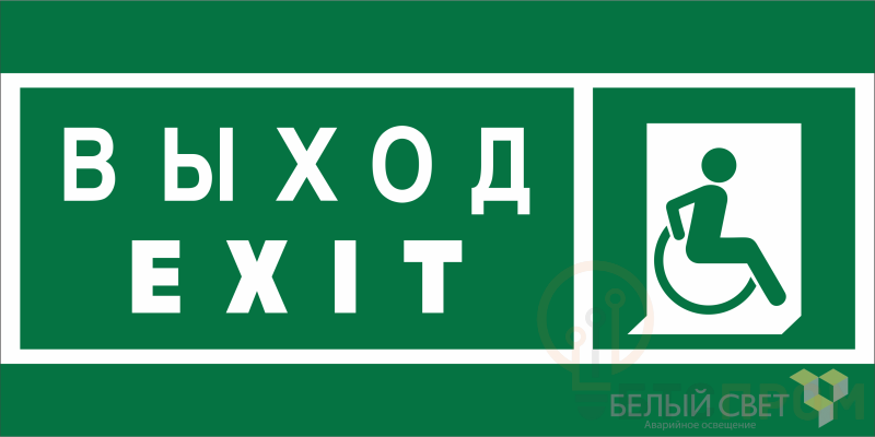 Знак безопасности BL-2915B.E63 "Указ. выхода для инвал. в креслах колясках (прав.)" Белый свет a19883