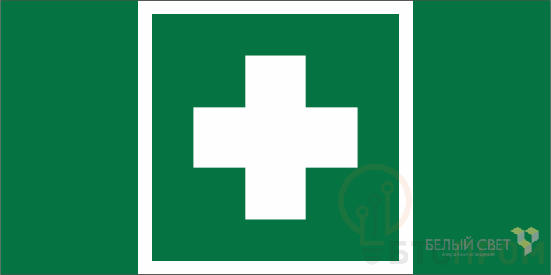 Знак безопасности "Аптечка первой медицинской помощи" габаритные размеры 290х145 мм, фактические размеры 145х145 мм, сигнальный цвет - зеленый, контрастный цвет - белый