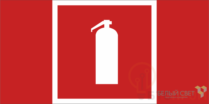 Знак безопасности "Огнетушитель" габаритные размеры 290х145 мм, фактические размеры 145х145 мм, сигнальный цвет - красный, контрастный цвет - белый