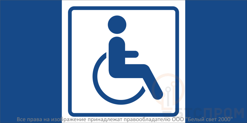 Знак безопасности "Символы доступности для инвалидов в креслах колясках" габаритные размеры 300х150 мм, фактические размеры 150х150 мм, сигнальный цвет - белый, контрастный цвет - синий