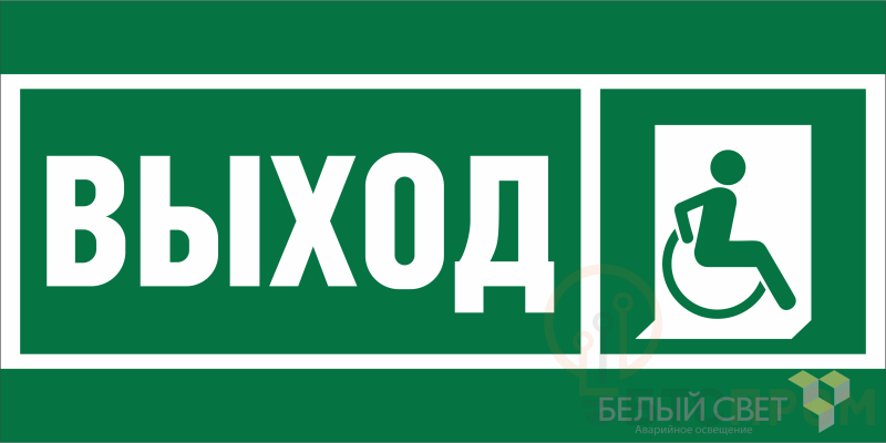 Знак безопасности "Указатель выхода для инвалидов в креслах колясках (правосторонний)" габаритные размеры 300х150 мм, фактические размеры 300х110 мм, сигнальный цвет - зеленый, контрастный цвет - белый