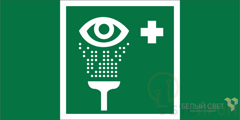 Знак безопасности "Пункт обработки глаз" габаритные размеры 300х150 мм, фактические размеры 150х150 мм, сигнальный цвет - зеленый, контрастный цвет - белый