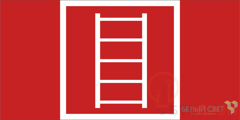 Знак безопасности "Пожарная лестница" габаритные размеры 300х150 мм, фактические размеры 150х150 мм, сигнальный цвет - красный, контрастный цвет - белый