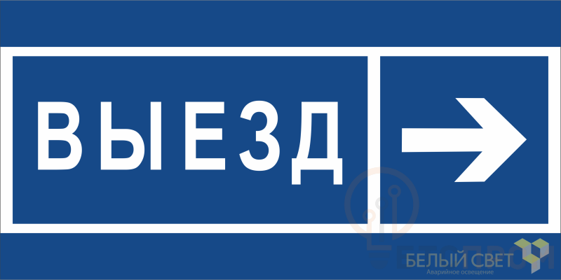 Знак безопасности "Направление к воротам выезда направо" габаритные размеры 300х150 мм, фактические размеры 300х110 мм, сигнальный цвет - синий, контрастный цвет - белый
