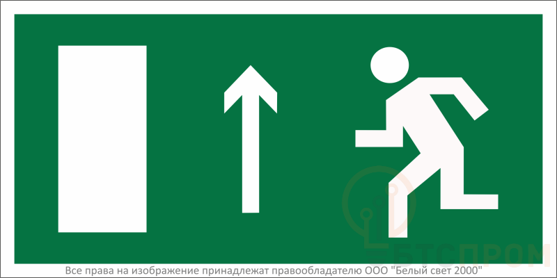 Знак безопасности "Направление к эвакуационному выходу прямо", габаритные размеры 300х150 мм, фактические размеры 300х150 мм, сигнальный цвет - зеленый, контрастный цвет - белый