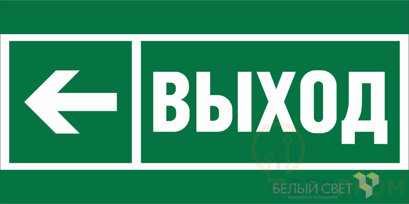 Знак безопасности "Направление к эвакуационному выходу налево", габаритные размеры 300х150 мм, фактические размеры 300х150 мм, сигнальный цвет - зеленый, контрастный цвет - белый