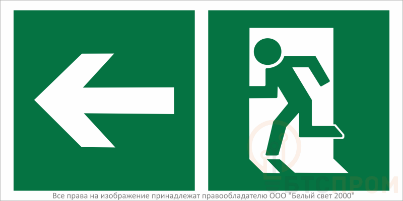 Знак безопасности "Направление к эвакуационному выходу налево", габаритные размеры 300х150 мм, фактические размеры 300х150 мм, сигнальный цвет - зеленый, контрастный цвет - белый
