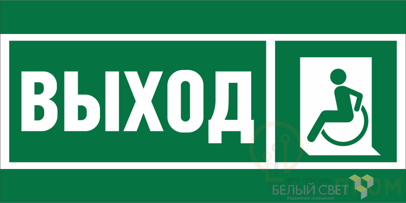 Знак безопасности BL-3015A.E62 "Указ. выхода для инвал. в креслах колясках (лев.)" Белый свет a19606