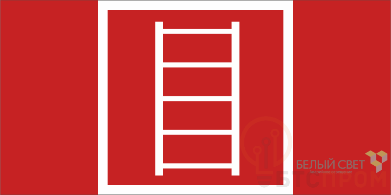 Знак безопасности "Пожарная лестница", габаритные размеры 300х150 мм, фактические размеры 300х150 мм, сигнальный цвет - красный, контрастный цвет - белый