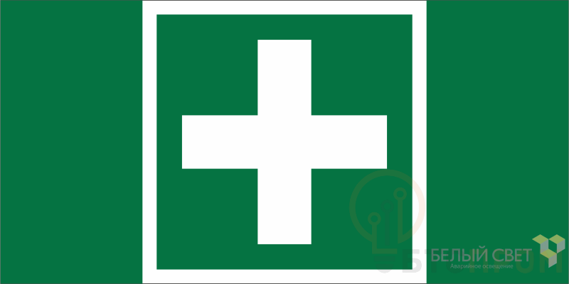 Знак безопасности "Медпункт", габаритные размеры 300х150 мм, фактические размеры 300х150 мм, сигнальный цвет - зеленый, контрастный цвет - белый