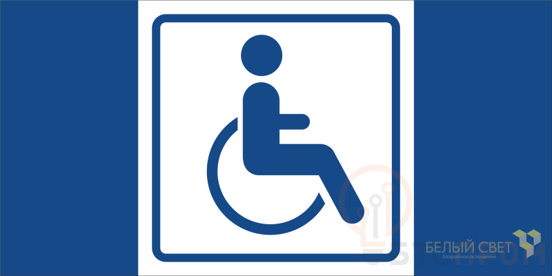 Знак безопасности "Символы доступности для инвалидов в креслах колясках", габаритные размеры 300х150 мм, фактические размеры 300х150 мм, сигнальный цвет - белый, контрастный цвет - синий