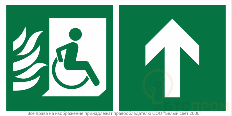 Знак безопасности BL-3015B.E87 «Эвакуационные пути для инвалидов прямо» — это специализированная пиктограмма, предназначенная для оснащения объектов с целью обозначения безопасного направления движения для маломобильных групп населения в случае возникновения чрезвычайной ситуации.