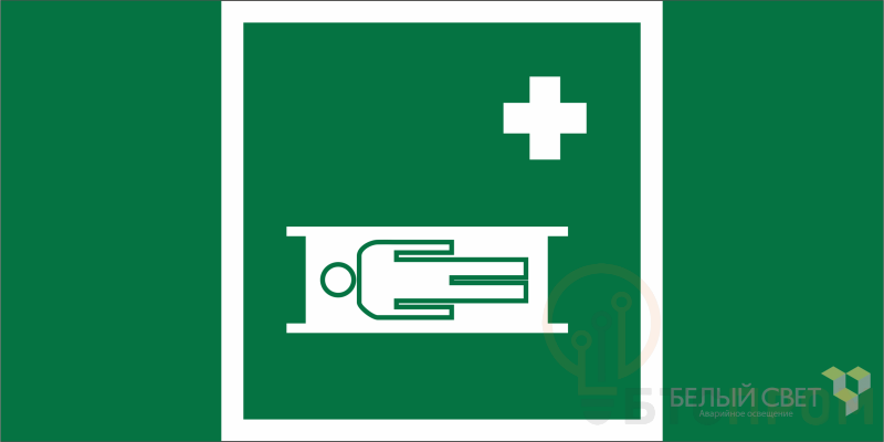 Знак безопасности "Средства выноса (эвакуации) пораженных", габаритные размеры 300х150 мм, фактические размеры 300х150 мм, сигнальный цвет - зеленый, контрастный цвет - белый