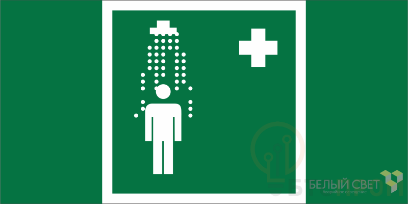Знак безопасности "Пункт приема гигиенических процедур (душевые)", габаритные размеры 300х150 мм, фактические размеры 300х150 мм, сигнальный цвет - зеленый, контрастный цвет - белый