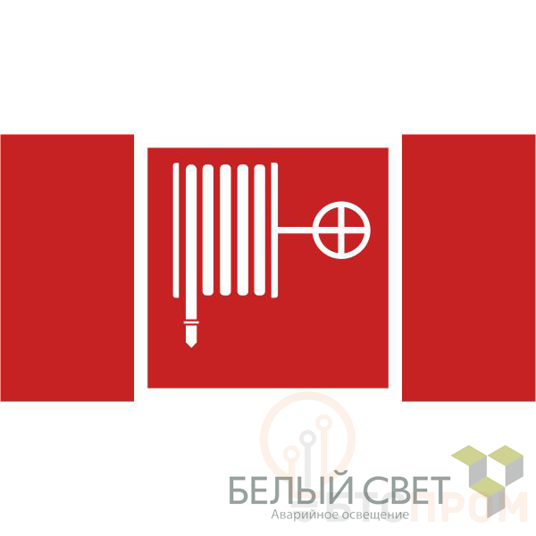 Знак безопасности "Пожарный кран", габаритные размеры 300х150 мм, фактические размеры 300х150 мм, сигнальный цвет - красный, контрастный цвет - белый
