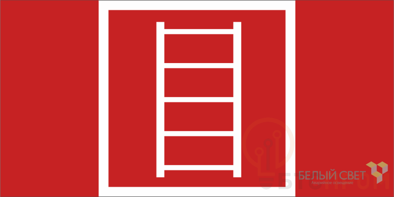 Знак безопасности "Пожарная лестница", габаритные размеры 300х150 мм, фактические размеры 300х150 мм, сигнальный цвет - красный, контрастный цвет - белый