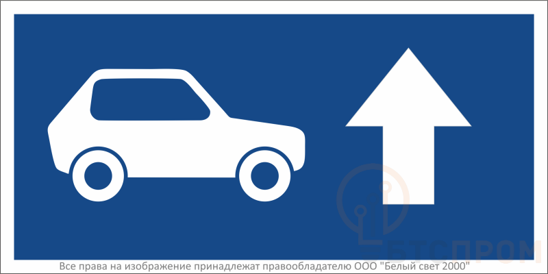 Основой знака служит прочная пластиковая панель белого цвета, на которую нанесена однозначная и интуитивно понятная пиктограмма — белая стрелка, указывающая направление движения прямо, на темно-синем или черном фоне. Данное цветовое решение обеспечивает максимальную контрастность и отличную видимость знака как в дневное, так и в ночное время суток. Знак оснащен мощной светодиодной подсветкой белого света, которая обеспечивает равномерное и яркое свечение всего символа, делая его заметным даже в условиях недостаточной видимости, тумана или запыленности.