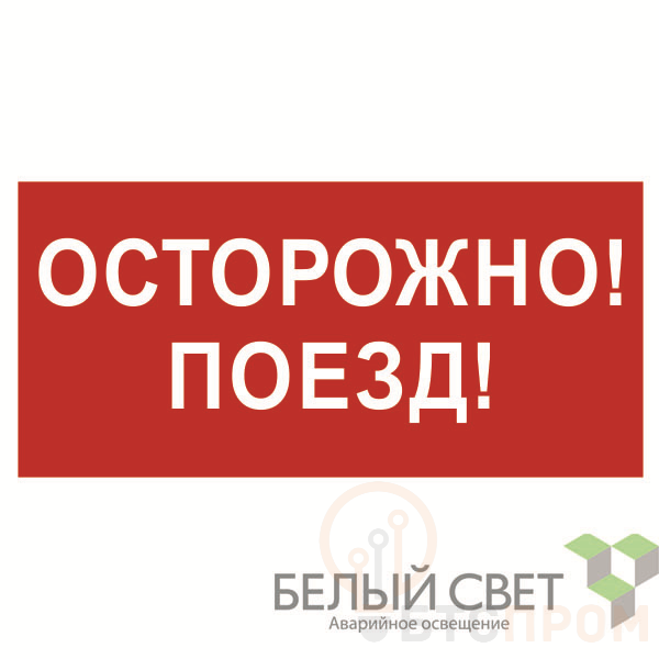 Знак безопасности "Осторожно поезд", габаритные размеры 300х150 мм, фактические размеры 300х150 мм, сигнальный цвет - красный, контрастный цвет - белый