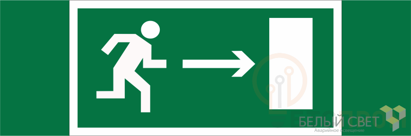 - Четкое графическое изображение и текстовая информация «НАПРАВЛЕНИЕ К ЭВАКУАЦИОННОМУ ВЫХОДУ НАПРАВО» обеспечивают мгновенное визуальное восприятие.