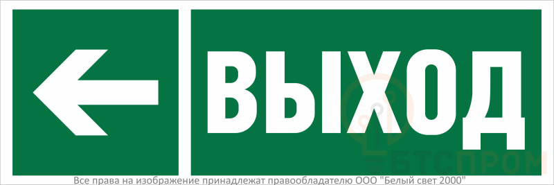 - Исполнение: Эвакуационный знак с указанием направления движения налево.