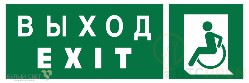 Знак безопасности BL-3511B.E64 "Указ. выхода для инвал. в креслах колясках (лев.)" Белый свет a27421