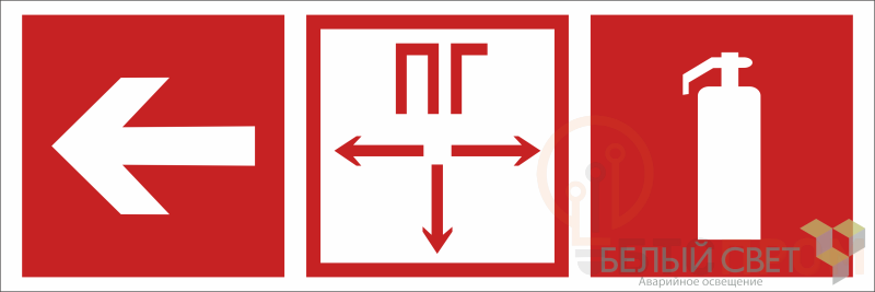 Знак безопасности BL-3511B.F53 "Указ. налево к пожарному гидранту и огнетушителю" Белый свет a27431 фото в каталоге от BTSprom.by