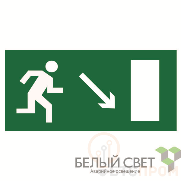Знак безопасности "Направление к эвакуационному выходу направо вниз" габаритные размеры 350х175 мм, фактические размеры 350х175 мм, сигнальный цвет - зеленый, контрастный цвет - белый