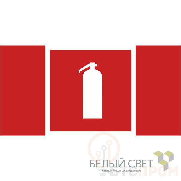 Знак безопасности "Огнетушитель" габаритные размеры 350х175 мм, фактические размеры 175х175 мм, сигнальный цвет - красный, контрастный цвет - белый