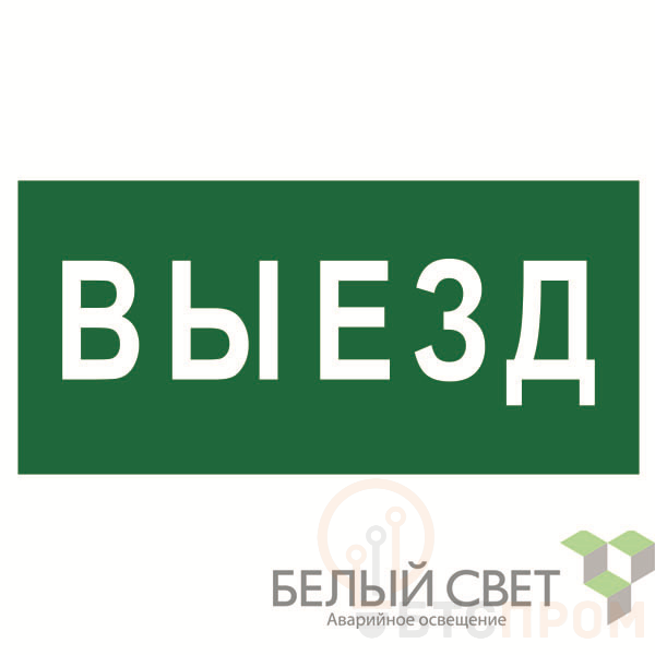 Знак безопасности "Указатель выезда" габаритные размеры 350х175 мм, фактические размеры 350х175 мм, сигнальный цвет - зеленый, контрастный цвет - белый