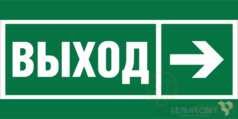 Знак безопасности "Направление к эвакуационному выходу направо" габаритные размеры 400х200 мм, фактические размеры 400х148 мм, сигнальный цвет - зеленый, контрастный цвет - белый